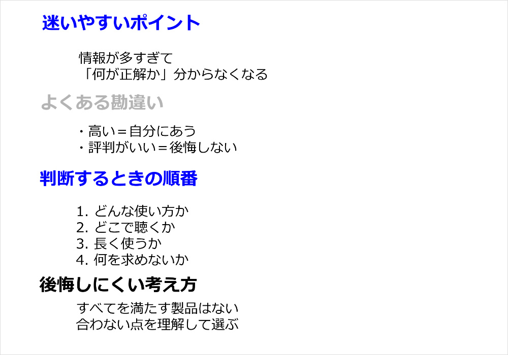 音が良いかどうかより「自分の使い方に合うか」だけを考えてください。